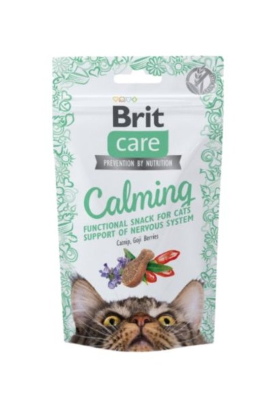 BRIT CARE CAT FUNCTIONAL SNACK CALMINGDopolnilna hrana za mačke. Poslastica za obogatena z mačjo meto in goji jagodami za podporo živčnega sistema. Sestava: piščančje beljakovine (26%), rumeni grah, glicerol rastlinskega izvora, hidrolizirane piščančje beljakovine (10%), hidrolizirana piščančja jetra (7%), grahove beljakovine, kolagen (4%), grahova moka, posušena mačja meta (2%), posušene goji jagode (1%). Analitske sestavine: surove beljakovine 31 %, surove maščobe 7 %, surovi pepel 6 %, surove vlaknine 1,5 %, vlaga 17 %, kalcij 0,9 %, fosfor 0,9 %, natrij 0,8 %, magnezij 0,1 %, omega-3 0,15 %, omega-6 0,65 %. Nutritivni dodatki na kg: vitamin C(3a312) 100 mg. Vsebuje EU odobrene konzervanse: citronska kislina (E 330), DL-jabolčna kislina (E 296). Metabolična energija; 3.250 kcal/kg. Navodilo za doziranje: na embalaži se nahaja tablica za dnevni odmerek, glede na telesno težo mačke. Ponudite ga kot nagrado. Najbolje hraniti iz roke kot nagrada in priboljšek za uživanje v skupnih trenutkih z vašim mačjim prijateljem. Sveža voda naj bo vedno na voljo. Priboljškov ne uporabite za nadomestilo dnevne prehrane. Navodilo za shranjevanje: shranite v suhem, hladnem prostoru, stran od direktne sončne svetlobe.