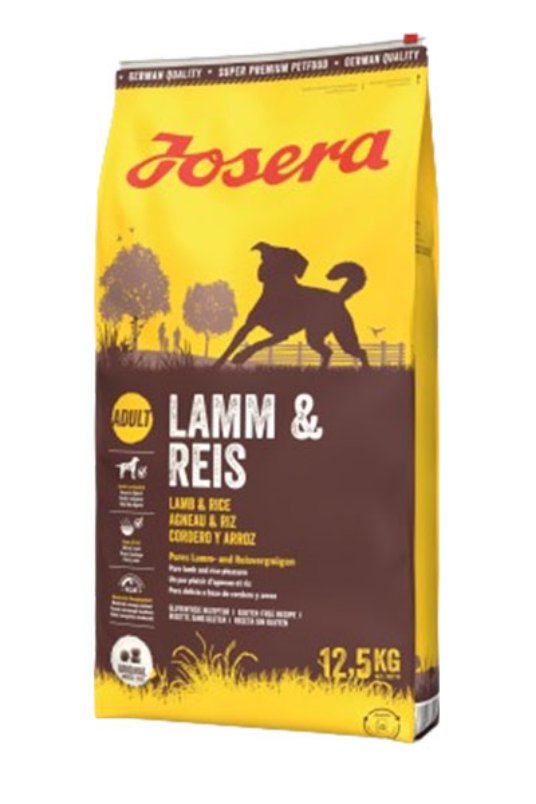 Josera dog Jagnjetina & Riž Popolna hrana za odrasle pse.Sestava: riž 53,0 %; sušeni protein jagnjetine 25,0 %; vlaknine pese; perutninska maščoba; delno hidroliziran kvas; rožičeva moka; minerali. Analitske sestavine na kg: beljakovine 20,0 %; vsebnost maščobe 11,0 %; surova vlaknina 2,6 %; surovi pepel 8,2 %; kalcij 2,00 %; fosfor 1,15 %; natrij 0,45 %; tavrin 1.000 mg. Dodatki: Nutritivni dodatki na kg: 22.600 I.E. vitamin A; 1.700 I.E. vitamin D3; 200 mg vitamin E; 15 mg vitamin B1; 20 mg vitamin B2; 20 mg vitamin B6; 100 mcg vitamin B12; 50 mg kalcijev D-pantotenat; 90 mg niacin; 5 mg folna kislina; 950 mcg biotin; 200 mg železo (železov (II) sulfat, monohidrat); 160 mg cinka (cinkov kelat iz hidrata glicina (trdni)); 18 mg mangana (manganov (II) oksid); 18 mg bakra (bakrov(II) kelat iz hidrata glicina (v trdni obliki)); 2,00 mg joda (brezvodni kalcijev jodat); 0,25 mg selena (natrijev selenit). Tehnološki dodatki: Antioksidanti: izvlečki tokoferola naravnega izvora. Priporočljive količine za hranjenje: glejte tabelo. Upoštevajte, da so priporočene količine smernice in jih je treba prilagoditi posamezni stopnji aktivnosti vaše domače živali. Domači živali vedno nudite svežo pitno vodo. Shranjujte v hladnem, suhem in temnem prostoru.